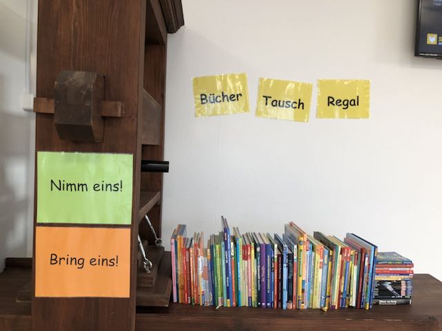 Unser Bücher-Tausch-Regal ist ein weiterer Schritt auf dem Weg zur Biosphären Schule, denn Nachhaltigkeit wird bei uns groß geschrieben.